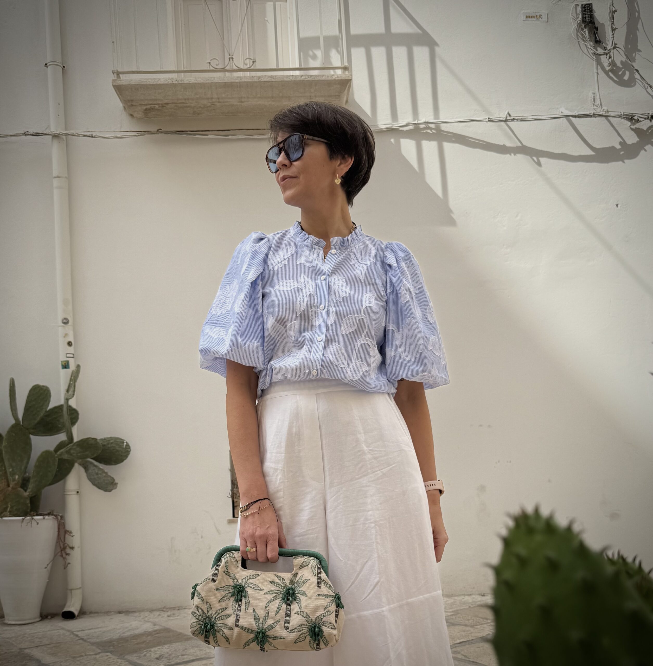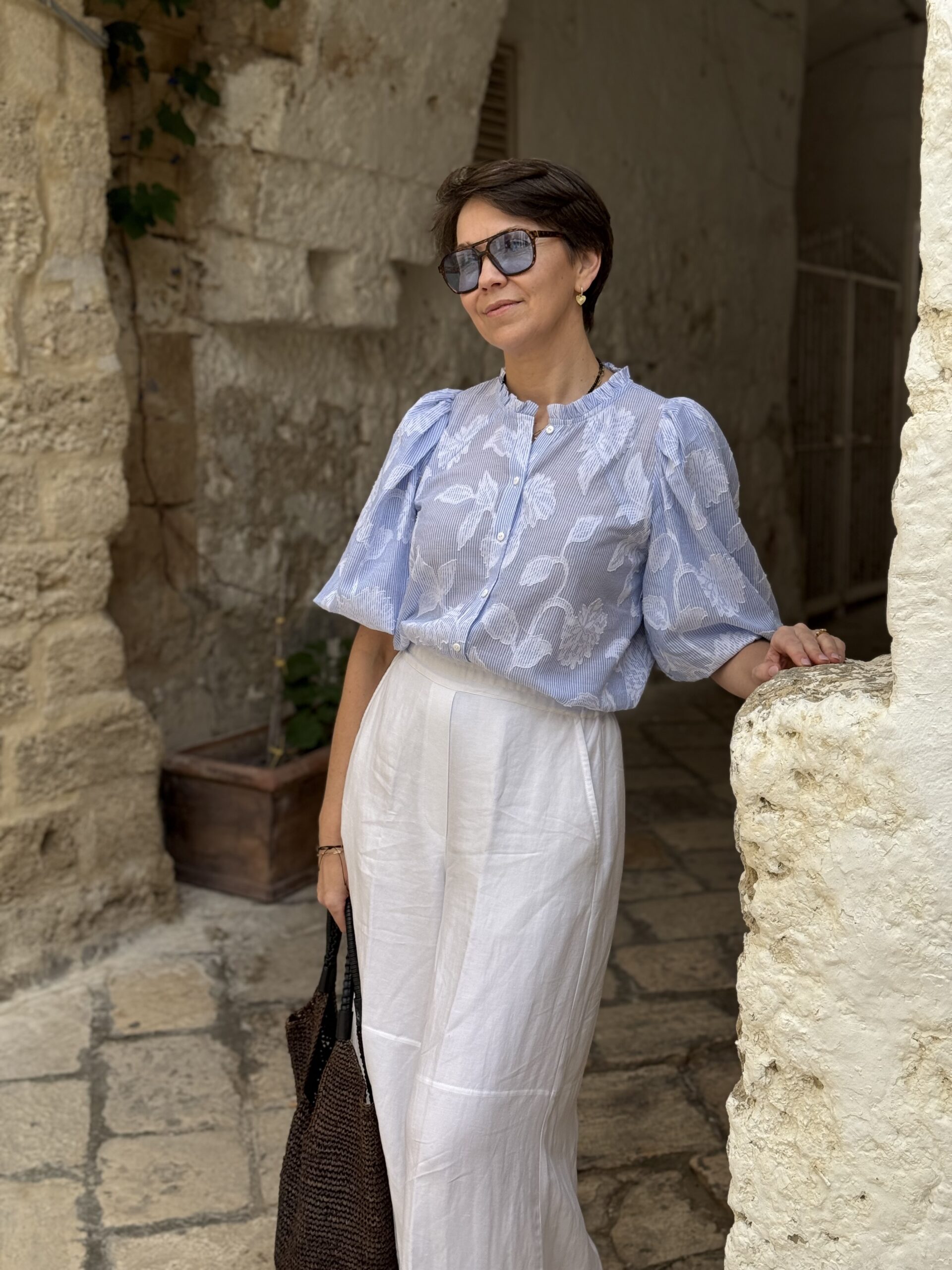Szerokie, marszczone rękawy sprawiają, że niby niezwykła bluzka robi wrażenie.