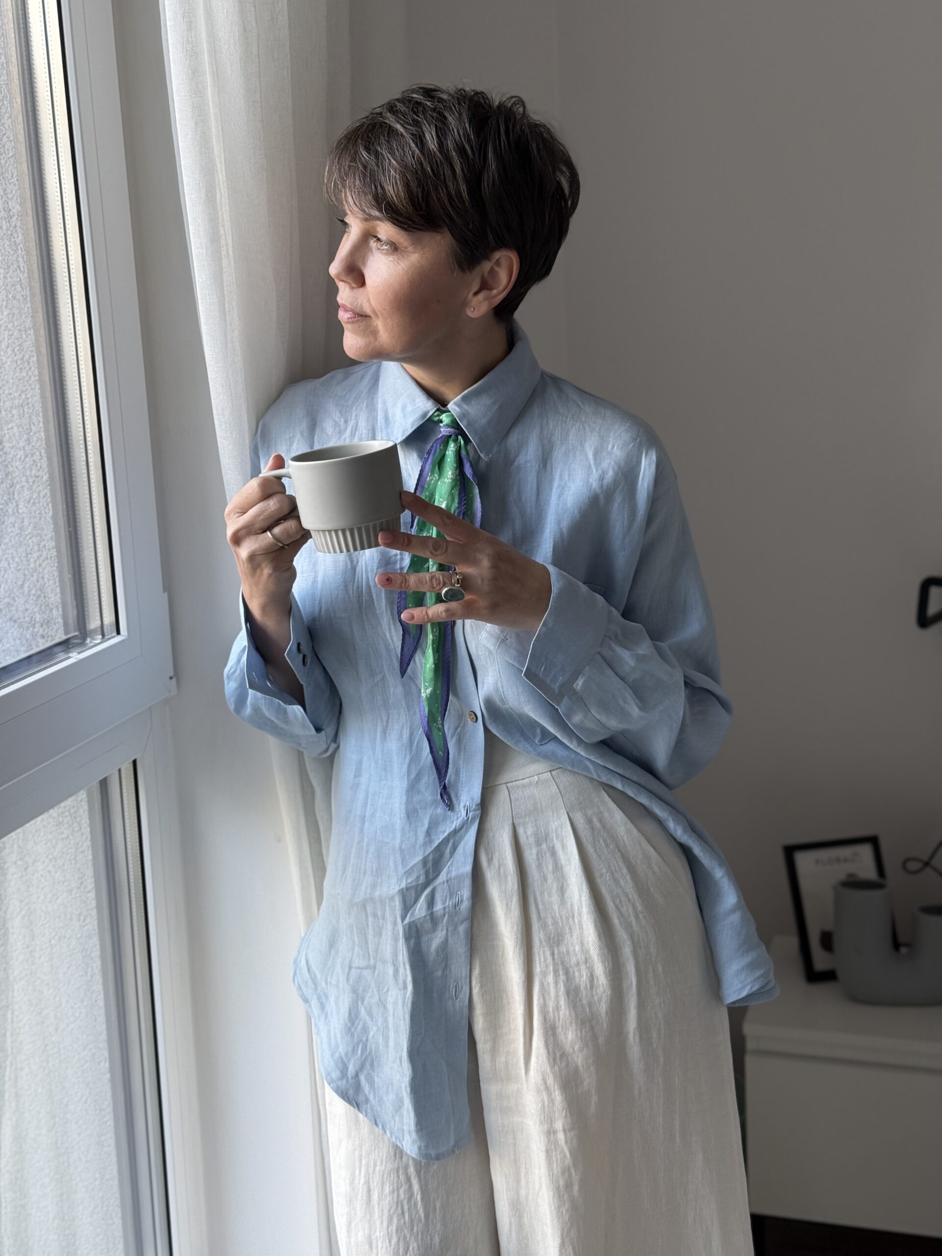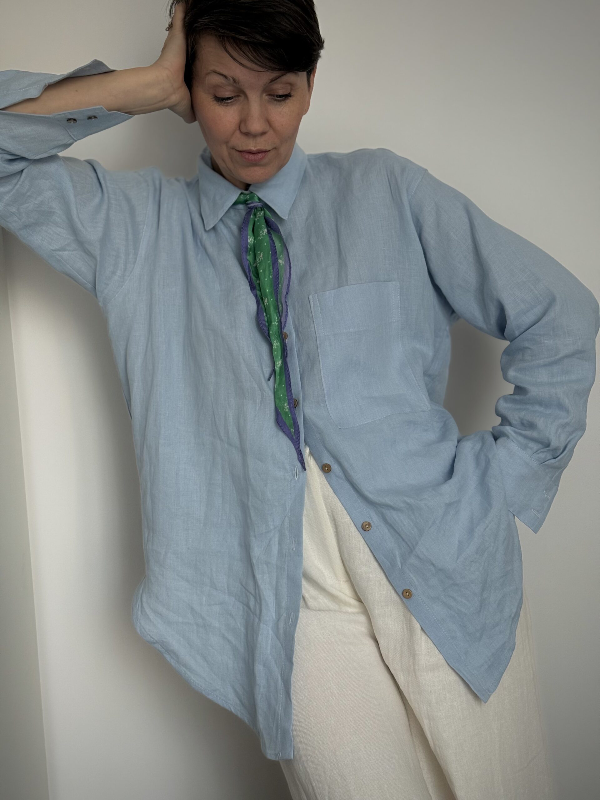 ♥ Klasyczna koszula wykonana z pięknego lnu, cała zapinana na guziki z kokosa.