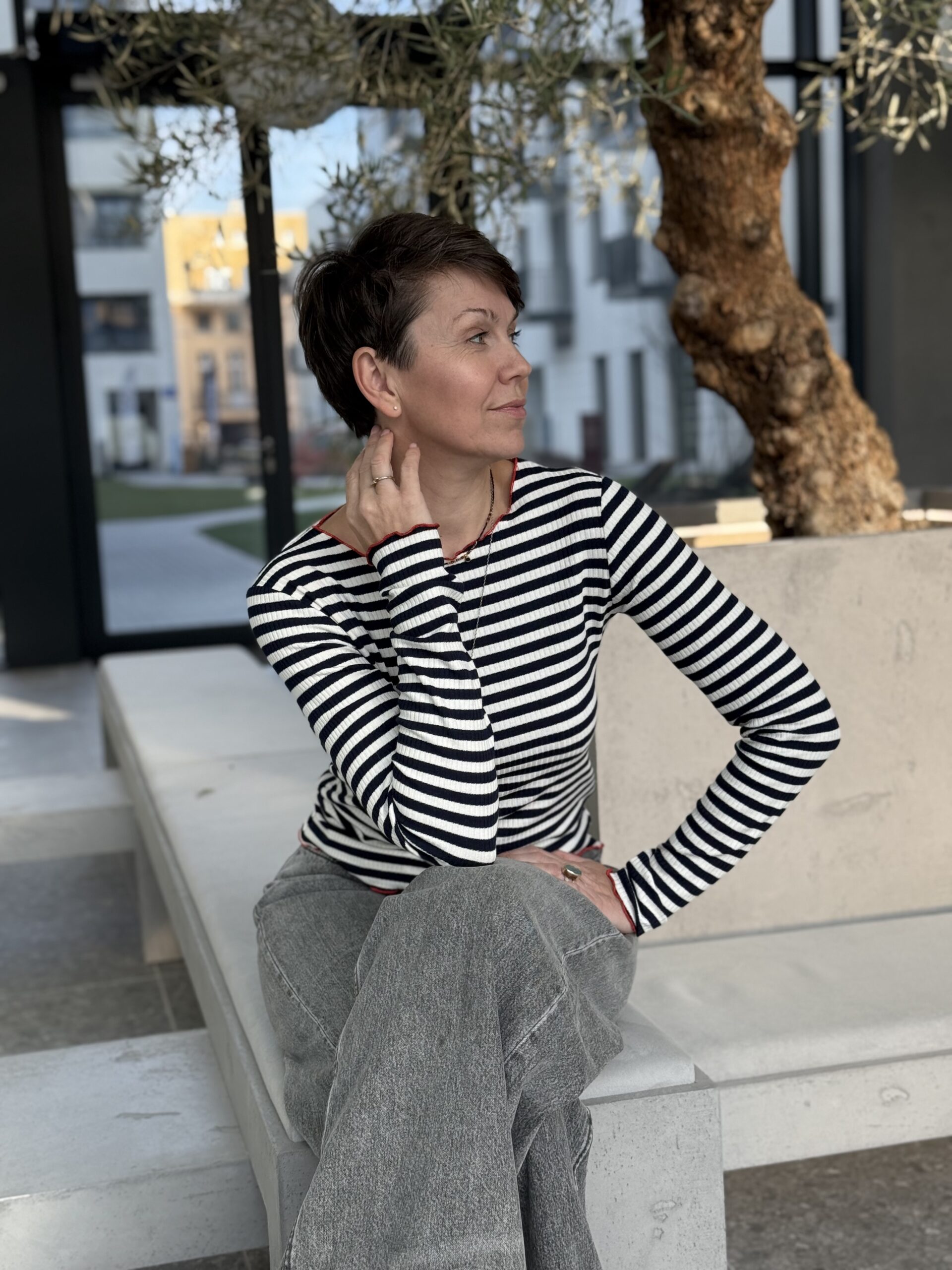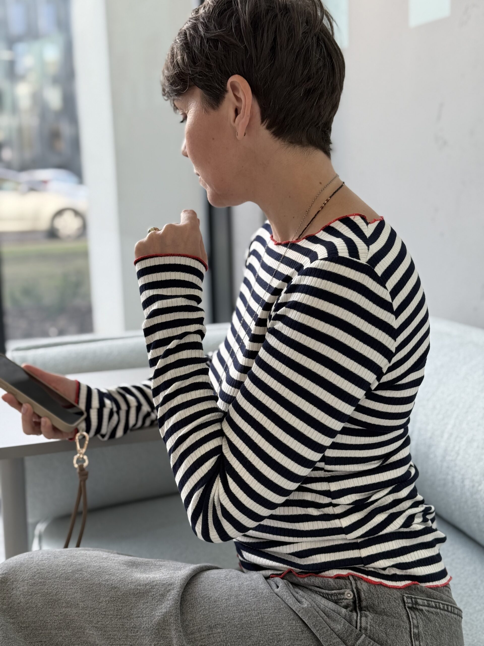 Dostępne kolory: paski ekru-granatowe z czerwoną mereżką