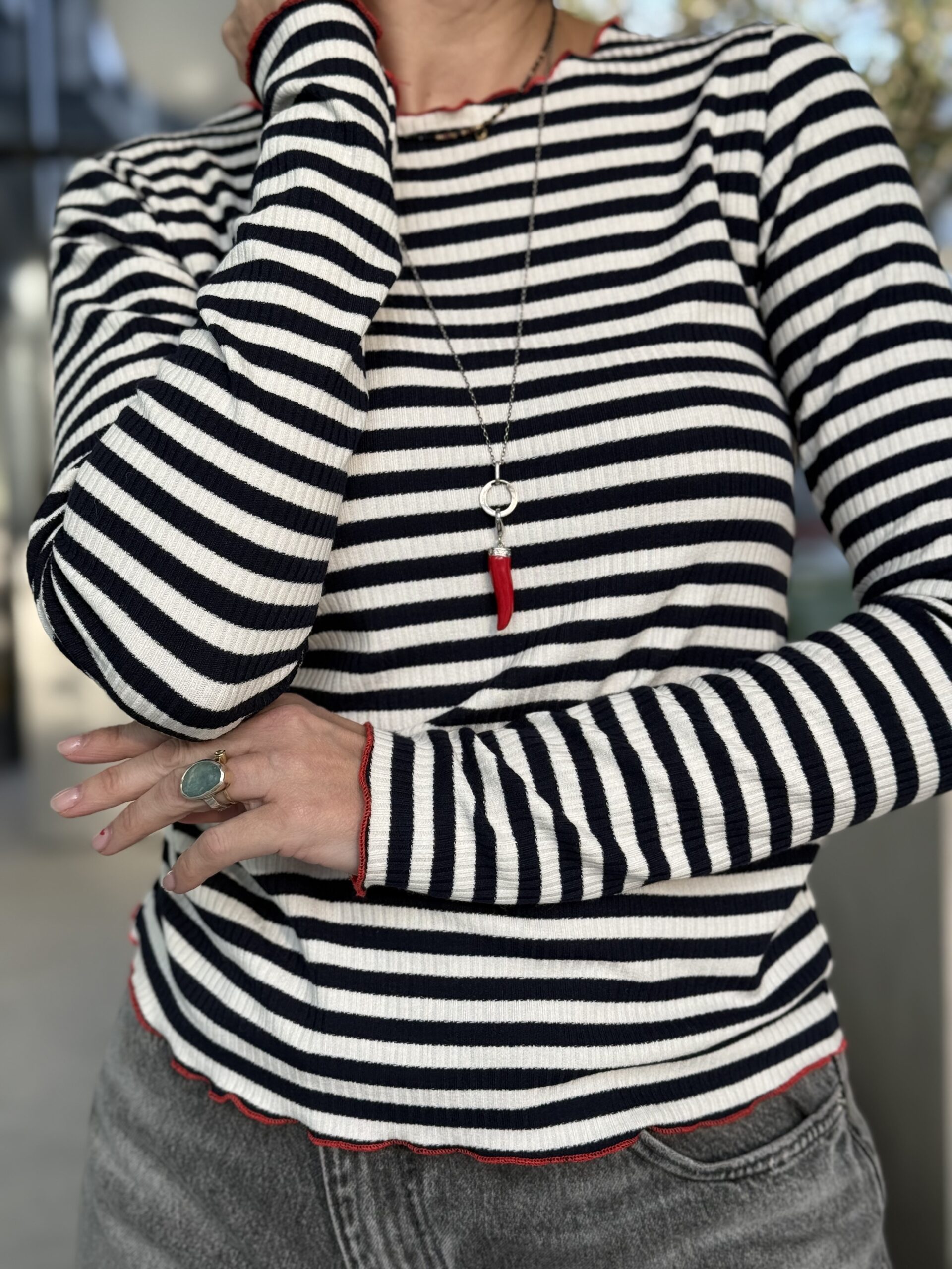 Longsleeve GAYA ♥ PASKI EKRU-GRANATOWE Z CZERWONĄ MEREŻKĄ