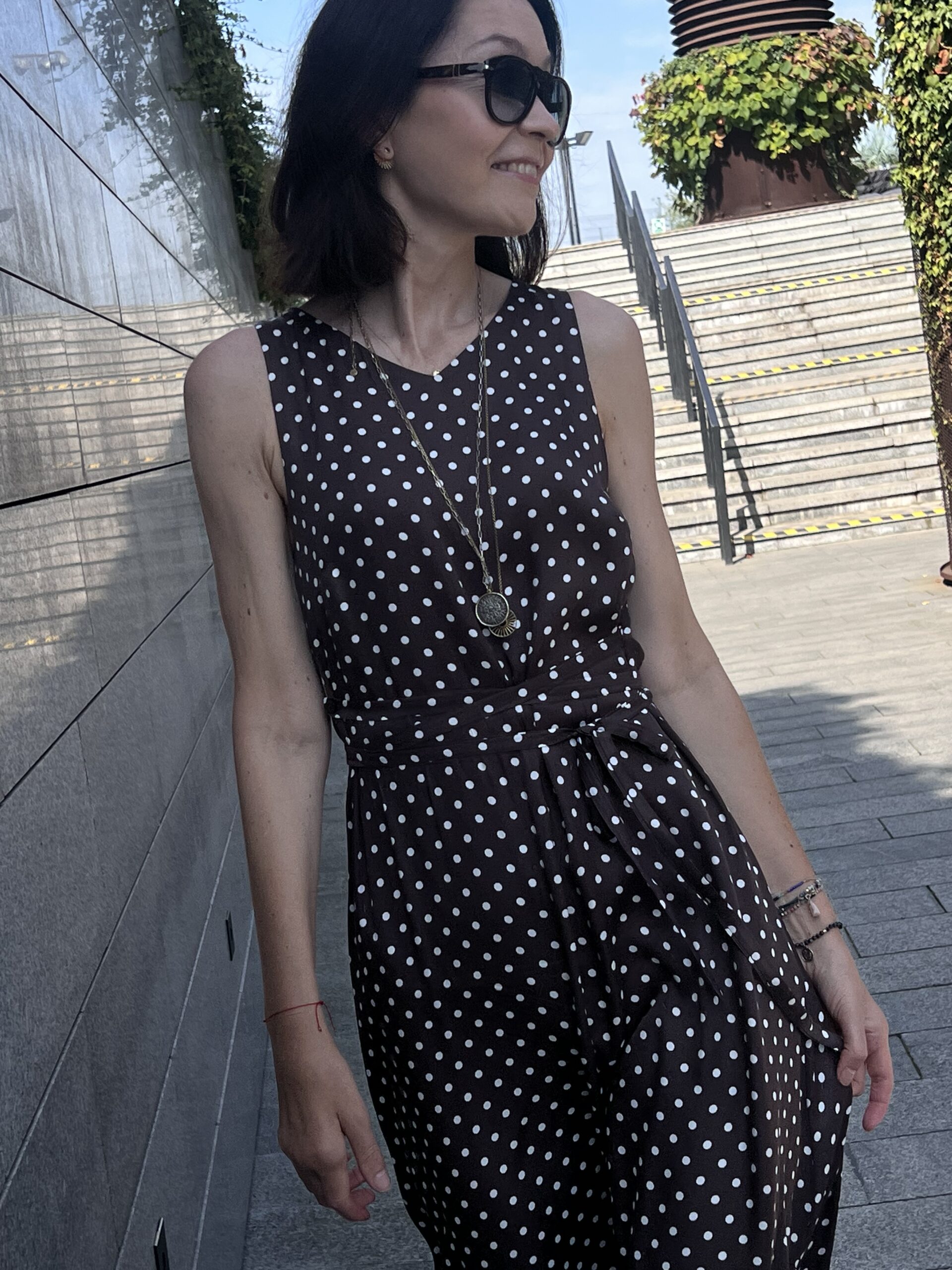 ♥ Wykonana z przepięknej, wiskozowej brązowej tkaniny w kropki