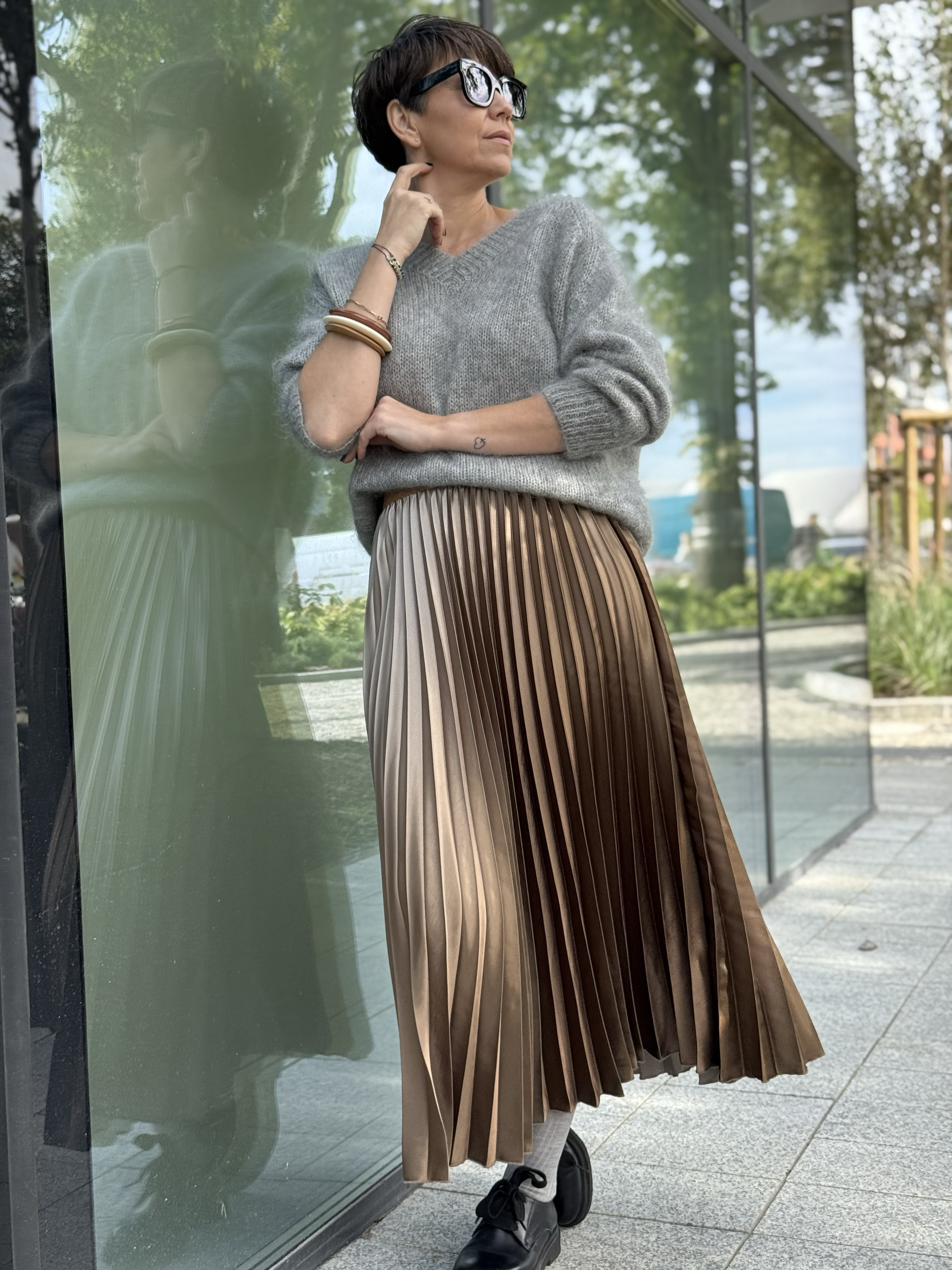 Spódnica midi jest dłuższa od poprzednich 5 cm.