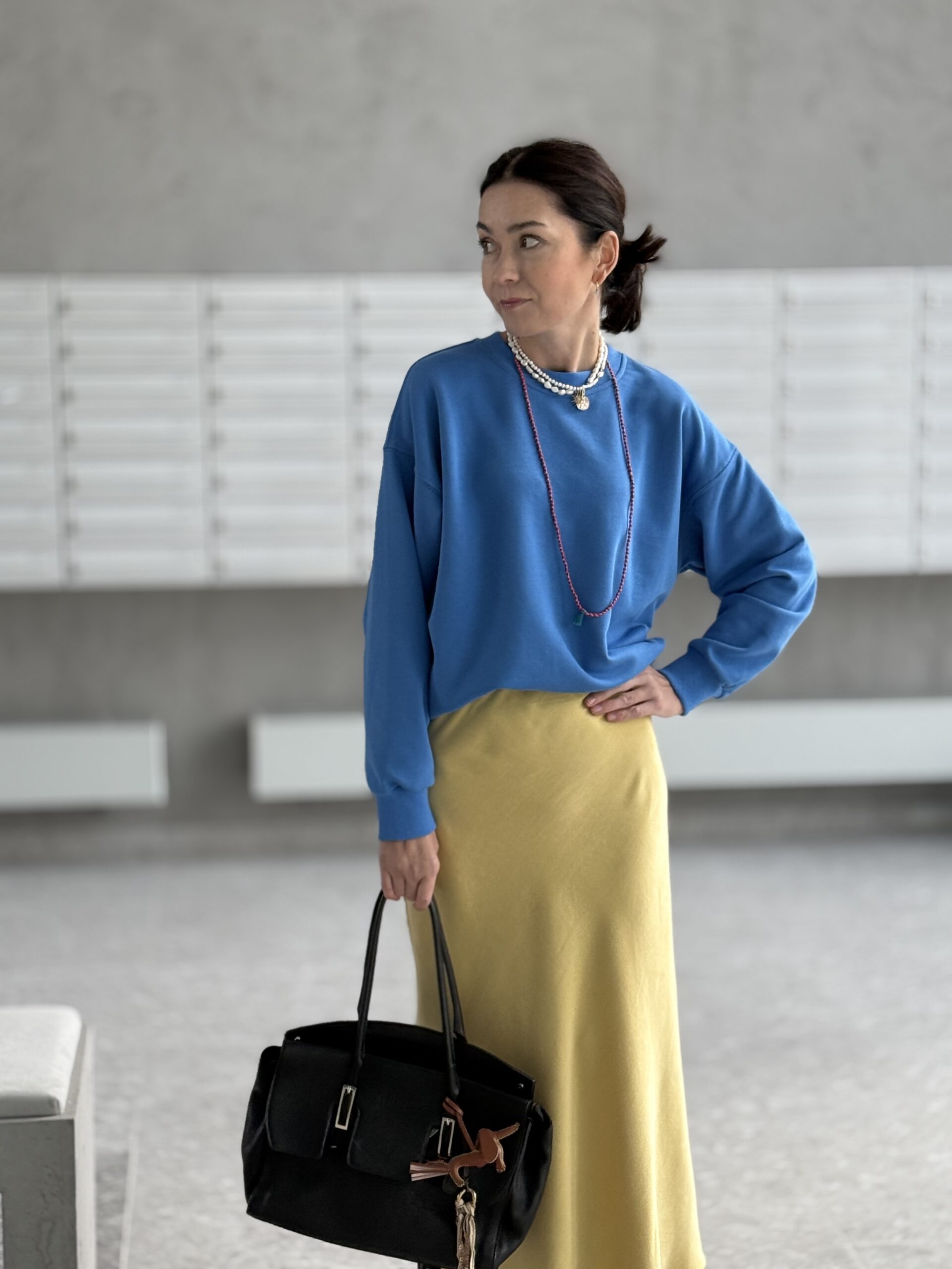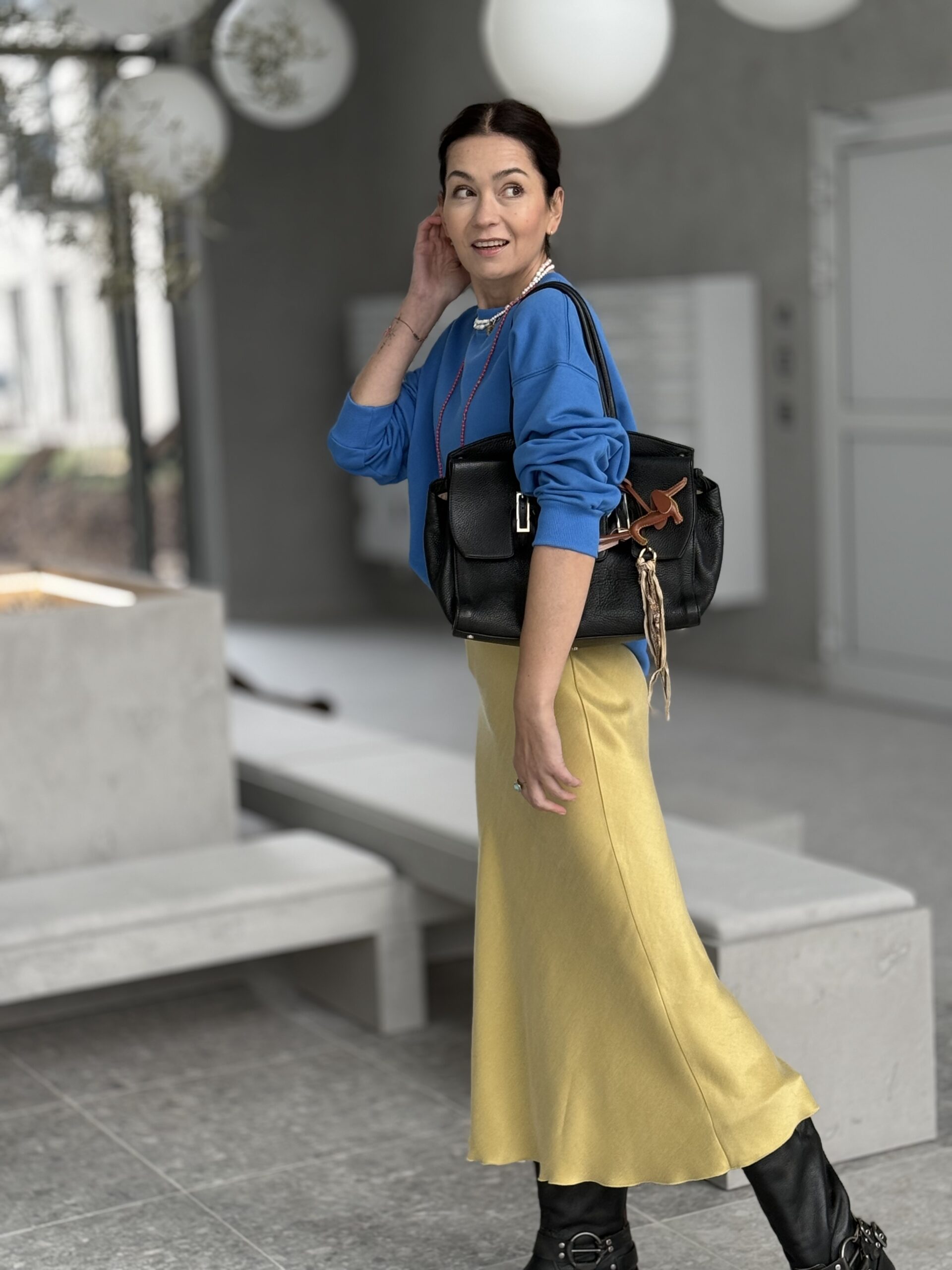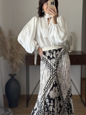 - Skrojona po skosie, dzięki czemu pięknie otula nasze ciało