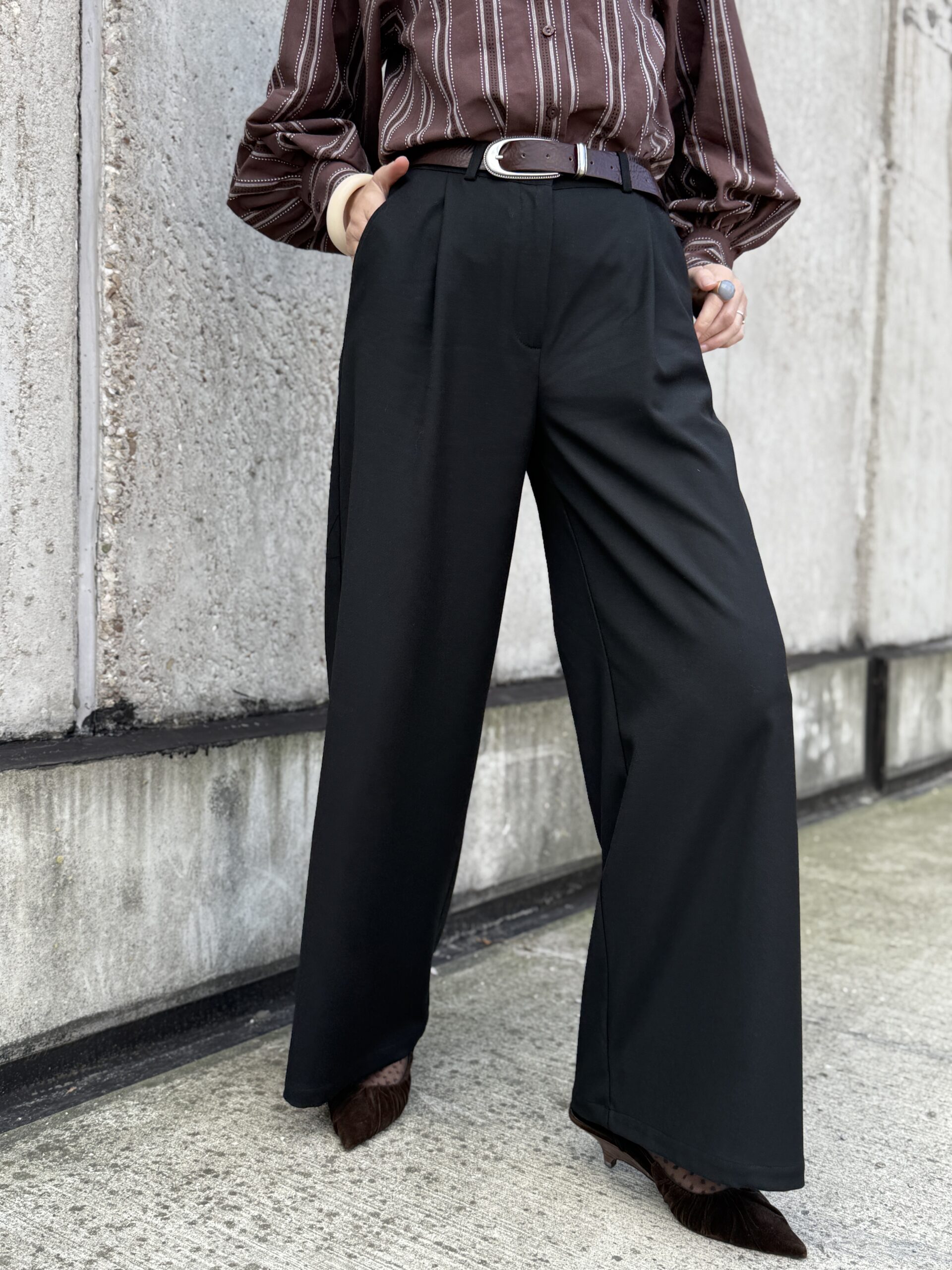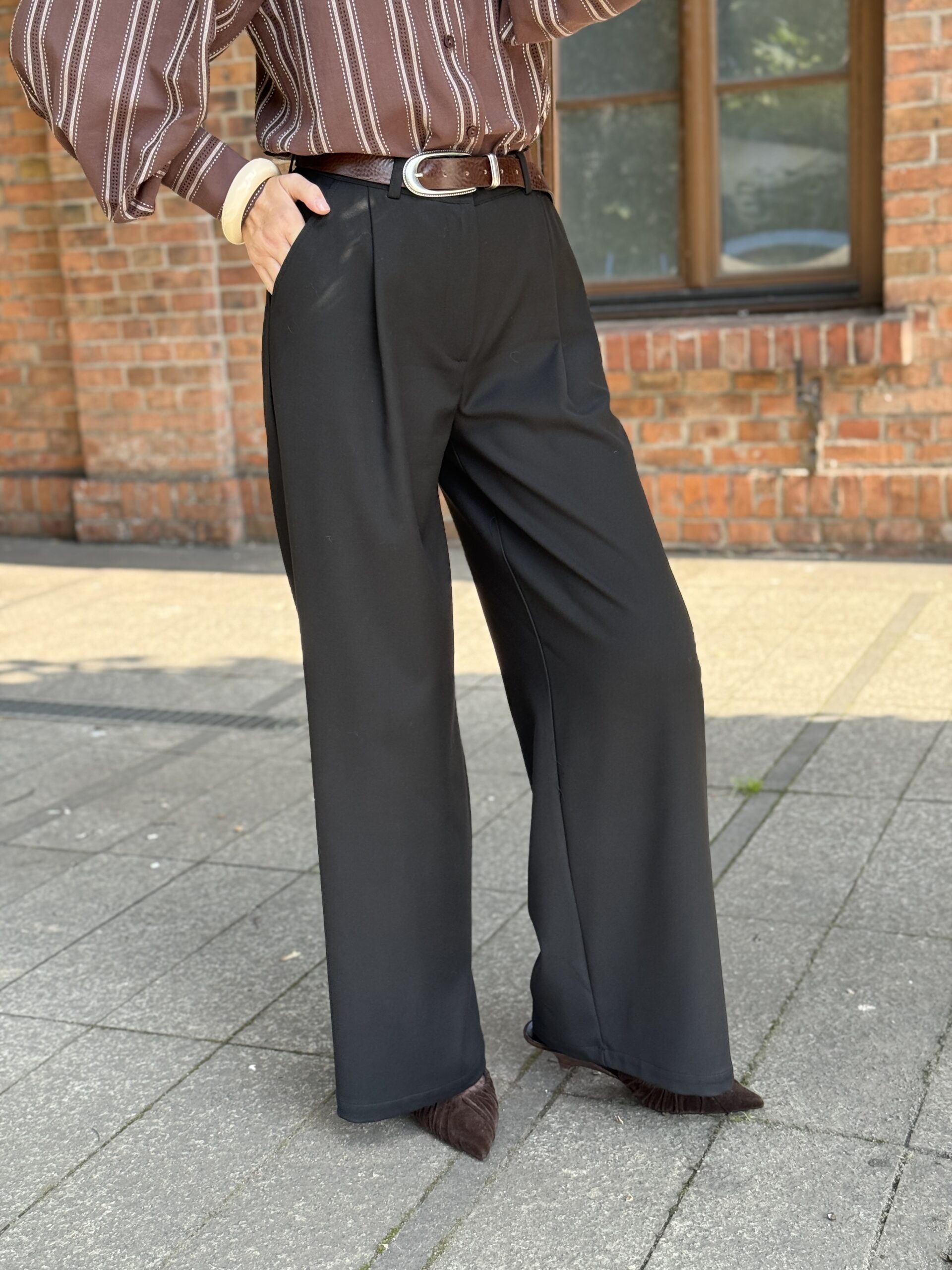 ♥ Spodnie z jedną zakładką w pasie i szeroką, prostą nogawką.
