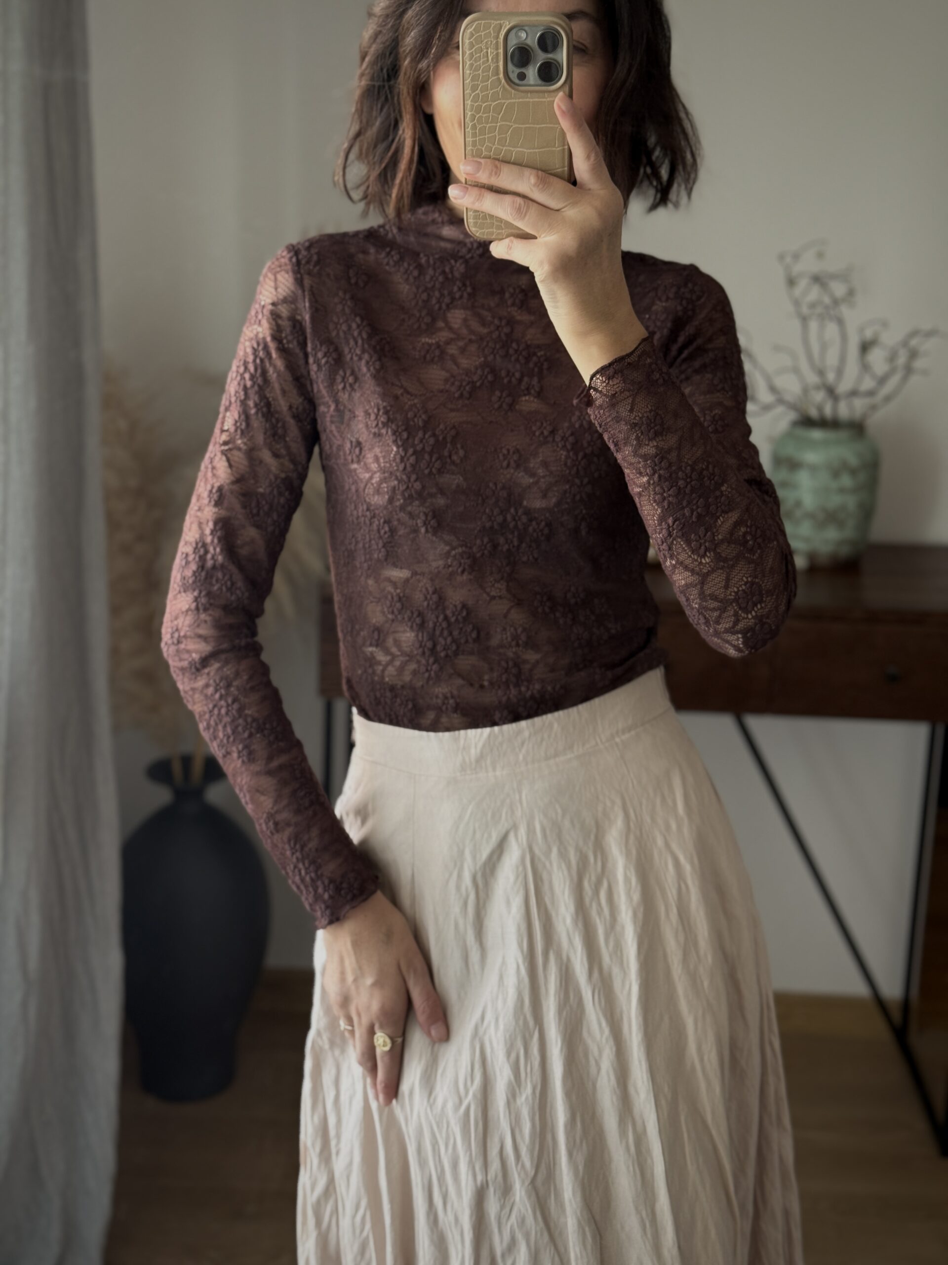 ∗ Top z długim rękawem wykonany z przepięknej koronki