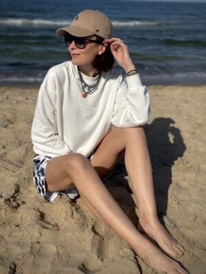Kuloty ♥ białe wiskozowe z dodatkiem lnu